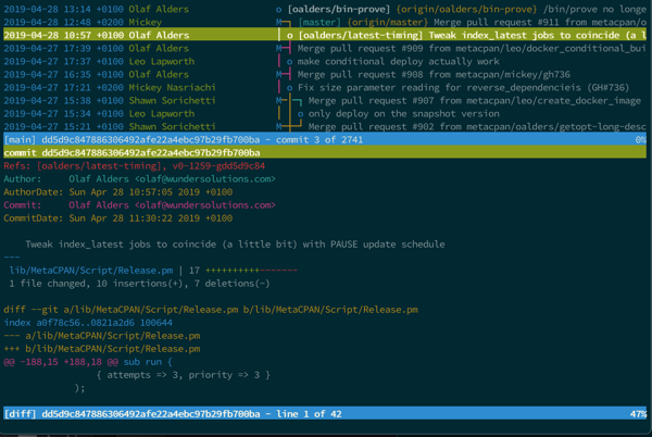 The last thing I wanted to mention is something I only learned about this week. While reading Celebrating 15 years of Git: An interview with Git maintainer Junio Hamano, I saw a reference to tig: